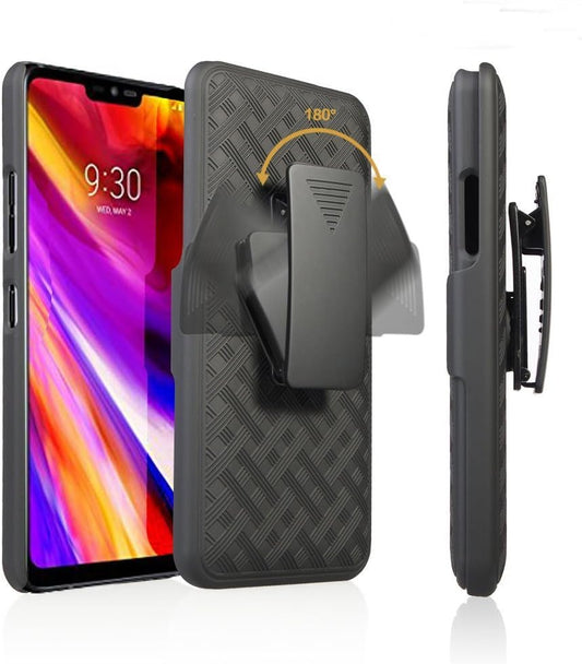Coque LG G7, coque LG G7 Thinq, clip ceinture, coque béquille Criss Cross noir, nouveau design à carreaux pour LG G7, LG G7 Thinq