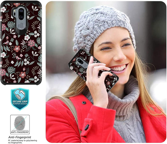 MGAH Coque compatible avec LG G7 avec motif floral, coque de téléphone LG G7 Thinq, très résistante (PC + TPU) double couche, coque de protection mignonne, robuste, anti-rayures, résistante aux chocs, pour femmes et filles, fleurs