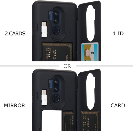 Étui TORU CX PRO pour LG G7 / LG G7 Thinq, avec porte-carte | Housse de protection fine avec portefeuille pour cartes de crédit cachées, compartiment à rabat, béquille | Comprend un miroir, une sangle et un adaptateur USB - Noir