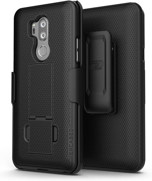 Étui à clip ceinture pour LG G7 Thinq – Encased (Duraclip) Slim Fit Holster Shell Combo avec poignée caoutchoutée (noir lisse)
