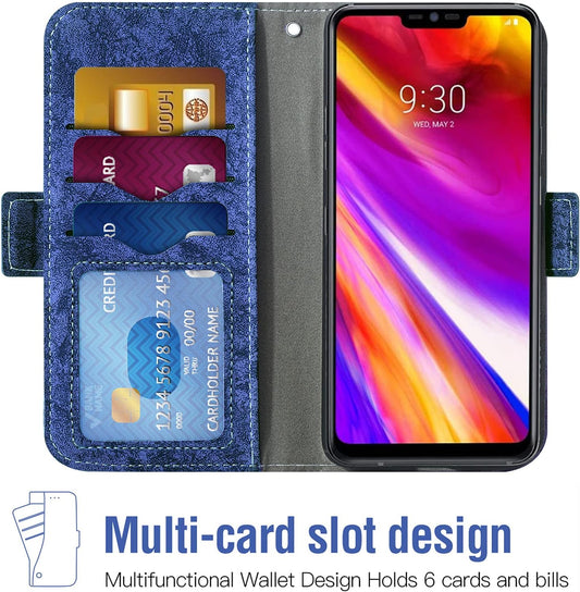 Asuwish Compatible avec LG G7 Thinq Étui portefeuille en verre trempé avec protection d'écran et porte-cartes en cuir avec béquille pour LGG7 One G 7 LG7 Fit Lg7Thinq 7G Thin Q G7+ G7Thinq Lgg7Thinq Bleu