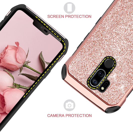 BENTOBEN Coque pour LG G7 Thinq, Coque pour LG G7, Robuste 2 en 1 Hybride Dur PC Souple TPU Laminé Brillant Faux Cuir Chrome Antichoc Housse de Protection Coque de Protection pour LG G7/LG G7 Thinq, Or Rose