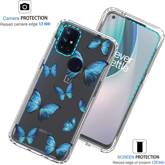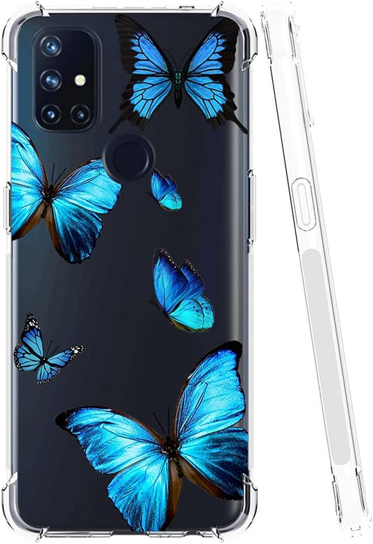 Bohefo Coque transparente compatible avec Oneplus Nord N10 5G, Oneplus N10 5G pour filles et femmes, jolie coque de protection en TPU souple résistant aux chocs pour Oneplus Nord N10 5G (papillon bleu)