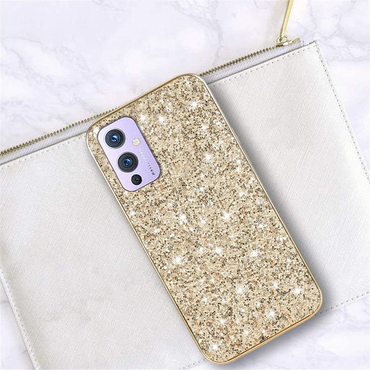 Compatible avec Oneplus 9 Coque à paillettes résistantes aux chocs, coque de téléphone Oneplus 9 en TPU souple et silicone PC brillant pour fille et femme (doré)