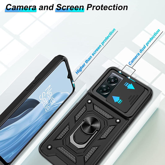 ATUMP Coque pour Oneplus Nord N300 5G avec protecteur d'écran HD, robuste, résistante aux chocs avec béquille métallique rotative à 360° [qualité militaire] Coque de protection pour Oneplus Nord N300 5G, noir