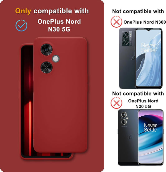 YENAPOON Coque pour Oneplus Nord N30 5G et lot de 2 films de protection d'écran en verre trempé, coque de protection fine en silicone liquide résistant aux chocs – Rouge