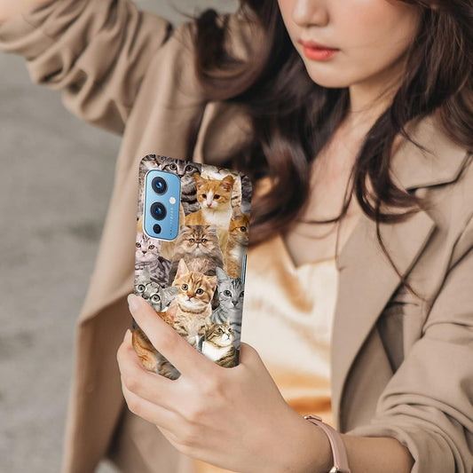 Glisten – Coque Oneplus 9, Oneplus 9 5G, 1+ 9 5G – Motif collage de chats imprimé, fin et élégant, mignon en plastique rigide à clipser, coque de protection arrière de styliste pour Oneplus 9 5G.