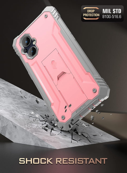 Poetic Revolution Series Coque pour Oneplus Nord N20 5G, [testé contre les chutes de 1,8 m], coque de protection intégrale robuste double couche résistante aux chocs avec béquille et protection d'écran intégrée, rose clair