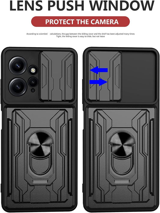 Ysnzaq Coque militaire résistante aux chocs pour Xiaomi Redmi Note 12 4G (pas 5G), fenêtre coulissante, lentille de protection avec emplacement pour carte pour Xiaomi Redmi Note 12 4G LJ Vert