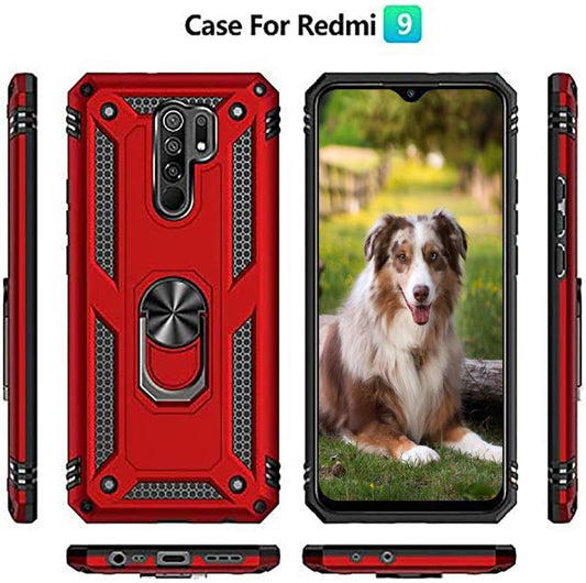 Duolide Coque pour Xiaomi Redmi 9 6,53" avec protection d'écran en verre trempé, hybride robuste double couche anti-rayures, antichocs, coque de protection avec béquille, rouge