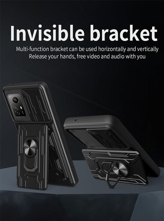 Ysnzaq Coque pour Xiaomi Redmi Note 12 Pro avec porte-cartes et caméra coulissante, coque de protection antichoc de qualité militaire pour Xiaomi Redmi Note 12 Pro/Poco X5 Pro YHZH Noir