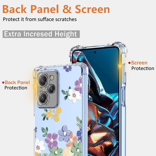 DFTCVBN Coque pour Xiaomi Poco X5 Pro, Note 12 Pro Speed 5G 22101316C, coque avec protecteur d'écran, transparent, coloré, floral, résistant aux chocs, coque de téléphone en TPU pour Xiaomi Poco X5 Pro, peinture à l'huile, fleurs