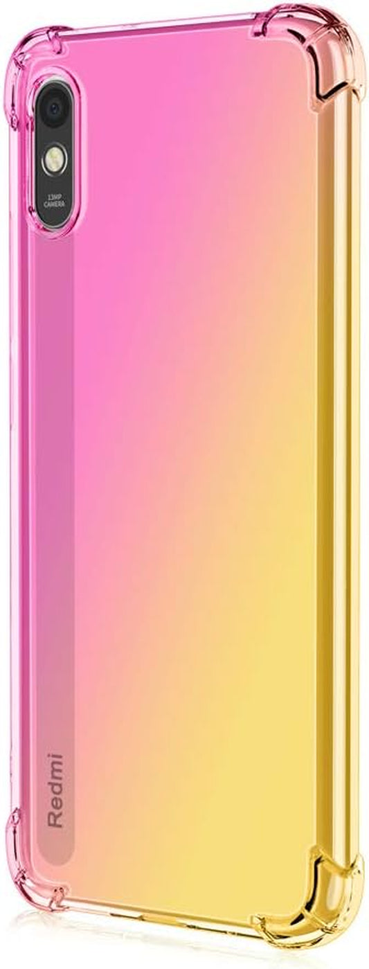 Easylifego Coque pour Xiaomi Redmi 9A Slim Absorption des Chocs Flexible TPU Bord Souple Bumper avec Coins Renforcés Multicolore Dégradé Housse de Protection Rose Or