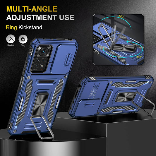 Wefor Coque pour Xiaomi Redmi Note 11 (4G) avec coque coulissante pour appareil photo, anneau magnétique à 360°, béquille améliorée de qualité militaire, coque antichoc avec support magnétique de voiture (bleu marine)