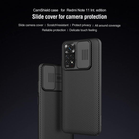 Coque Xiaomi Redmi Note 11 (4G) avec coque pour appareil photo, coque de protection fine en polycarbonate antichoc avec coque coulissante pour appareil photo, coque améliorée pour Xiaomi Redmi Note 11 (4G) (noir)