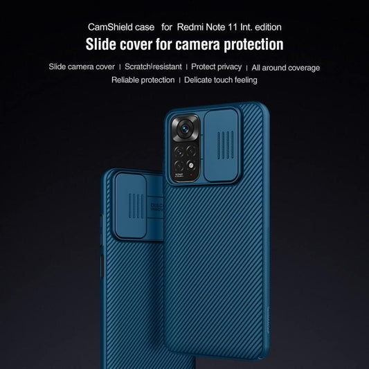 Coque Xiaomi Redmi Note 11 (4G) avec coque pour appareil photo, coque de protection fine en polycarbonate résistant aux chocs avec coque coulissante pour appareil photo, coque améliorée pour Xiaomi Redmi Note 11 (4G) (bleu)