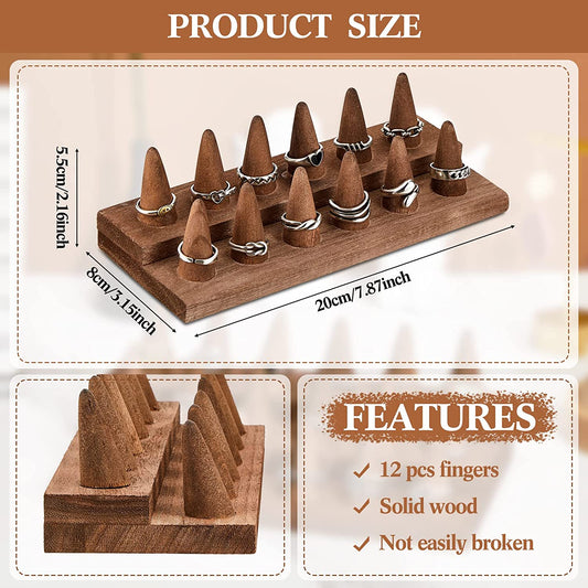 Juexica Présentoir de bague en bois à 24 doigts, présentoir de bague en bois, présentoir de bague pour vendre des bijoux, vitrine pour organisateur de bagues, rangement d'exposition de bijoux