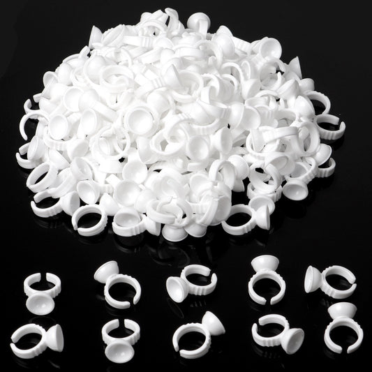 Btartbox 300 pièces anneaux de tatouage tasses porte-colle jetable en plastique encre de tatouage anneau de pigment adhésif anneaux de maquillage palette pour extension de cils Nail Art