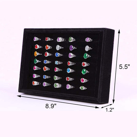 Tinsow Noir Empilable 7 Fentes Bijoux Bagues Boucles d'oreilles Plateau Velours Vitrine Présentoir Organisateur (Noir)