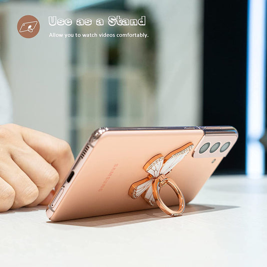 Anneau de support papillon pour téléphone portable, rotation à 360°, compatible avec iPhone, Samsung Galaxy, LG Google Pixel, iPad, strass et émail (or rose et blanc)