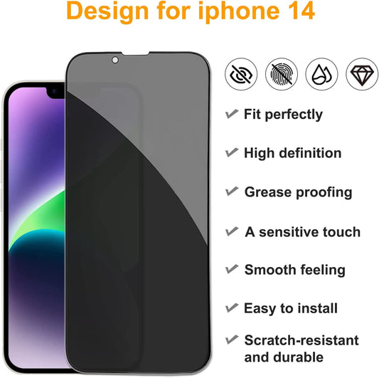Pehael [2+2 Pack] Iphone 14 Privacy Screen Protector with Camera Lens Protector Full Coverage Anti-Spy Tempered Glass Film 9H Hardness Upgrade Edge Protection Easy Installation Bubble Free Specially Designed for Iphone 14 [6.1 Inch]
