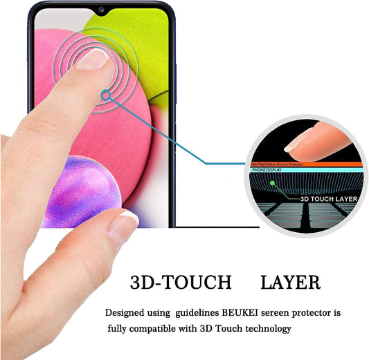 Beukei (Lot de 3) Protecteur d'écran Compatible avec Samsung Galaxy A03S Verre Trempé, Sensible au Tactile, Compatible avec Coque, Dureté 9H, pour Galaxy A03 Core/Galaxy A03S Protecteur d'écran