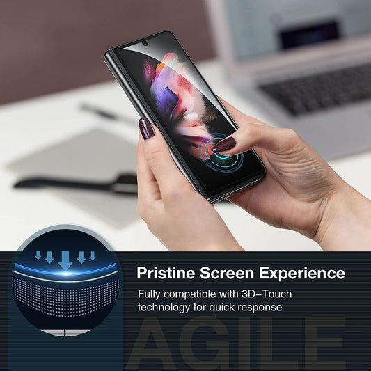 LK [3+3 Pack] Lot de 3 protecteurs d'écran avant pour Samsung Galaxy Z Fold 3 5G avec 3 protecteurs d'objectif d'appareil photo, anti-rayures, HD-Ultra, installation facile, verre trempé de dureté 9H pour Galaxy Z Fold 3