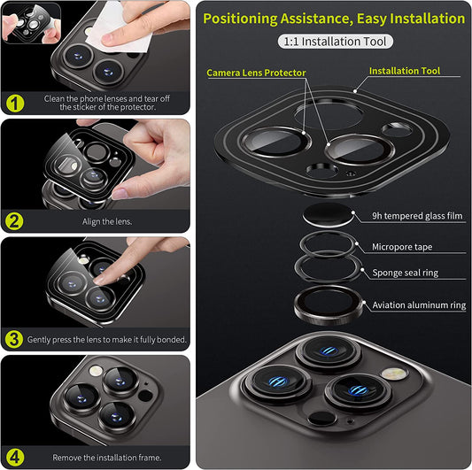 WSKEN Protecteur d'objectif d'appareil photo pour iPhone 14 Pro/iPhone 14 Pro Max, [Mode de prise de vue de nuit] Film de protection d'écran de caméra en verre trempé HD, accessoires de film, noir