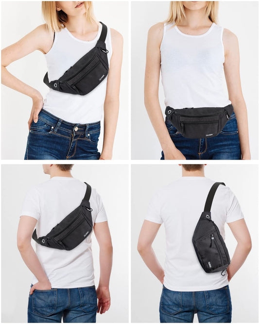 OLIKER Fanny Pack for Men Women,Large Crossbody Waist Bag Pack with 4-Zipper Pockets Adjustable Straps Side Key Ring Gifts for Outdoor Sports for Walking Running Travel Hiking Fit All Phones (Black)