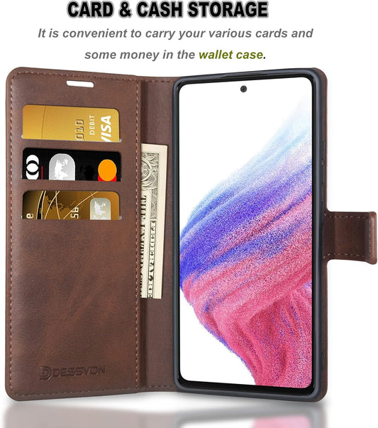 Case for Galaxy A53 5G, Samsung Galaxy A53 5G Leather Wallet Case Magnetic Folio Cover Kickstand Credit Card Holder Shockproof Phone Case for Men Compatible with Galaxy A53 5G (2022) Brown