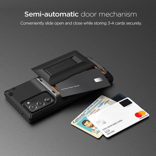 VRS DESIGN Damda Glide Coque de téléphone hybride pour Galaxy Note 20 Ultra, avec [4 cartes] [Semi Auto] Portefeuille robuste de qualité supérieure et béquille pour Samsung Galaxy Note 20 Ultra 5G, 6,9" (2020) Noir