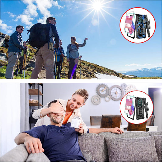 Coque pour Samsung Galaxy A53 avec protection d'écran Samsung Galaxy A53 Coque avec clip Galaxy A53 Coque avec béquille de qualité militaire robuste camouflage pour Samsung Galaxy A53 Homme Femme (Bleu)