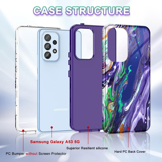 Btscase Coque pour Samsung Galaxy A53 5G, motif marbre 3 en 1, robuste, résistante aux chocs, coque intégrale robuste en polycarbonate + silicone souple, protection contre les chutes, pour femme et fille, Dreamland River/violet
