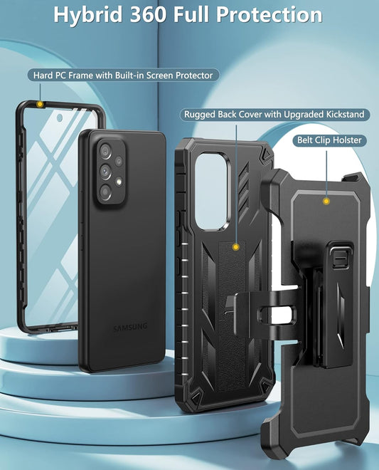 Coque Soios pour Samsung Galaxy A53 5G : avec protection d'écran et béquille intégrées | Étui robuste à clip de ceinture double couche pour tout le corps | Housse de protection résistante aux chocs pour téléphone - 6,5 pouces - Noir