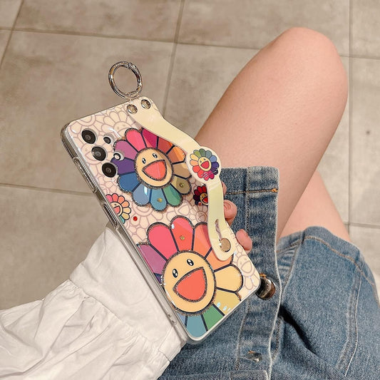 Lastma Coque pour Samsung Galaxy A53 5G 6,5" mignonne avec dragonne et béquille, paillettes scintillantes, dessin animé IMD souple en TPU résistant aux chocs, coque de protection pour filles et femmes – Tournesol
