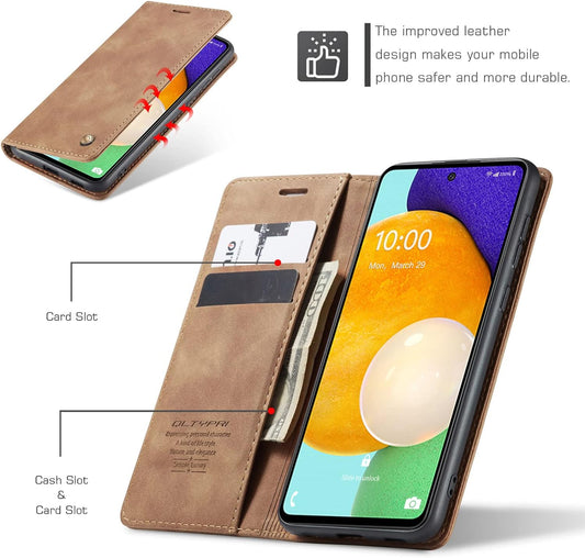 QLTYPRI Étui portefeuille vintage en cuir PU pour Samsung Galaxy A53 5G [Fentes pour cartes] [Béquille mains libres] [Fermeture magnétique] Étui portefeuille à rabat résistant aux chocs pour Samsung Galaxy A53 5G – Marron