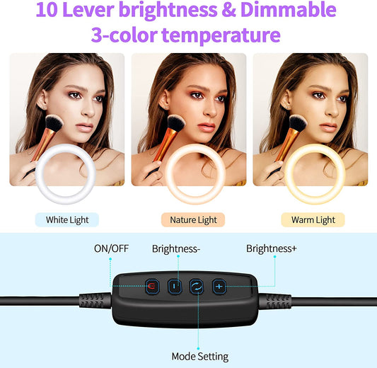 Imuviy Selfie Ring Light Set with Tripod Stand and Adjustable Cell Phone Holder for Live Stream or Diammable Desk Makeup Ring Light Kit Mini Led Camera Ringlight for Youtube Videos Photography