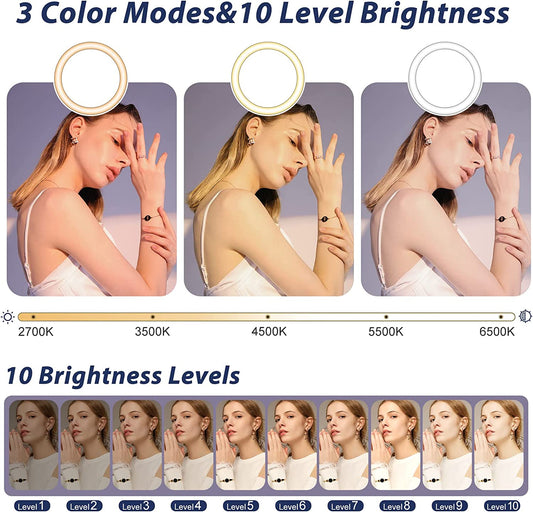 Selfie Ring Light 10" with Tripod Stand Cell Phone Holder and Remote Control,Dimmable LED Ring Light with 3 Light Modes and 10 Brightness Level for Iphone/Android Phone,Youtube,Live Stream,Photography