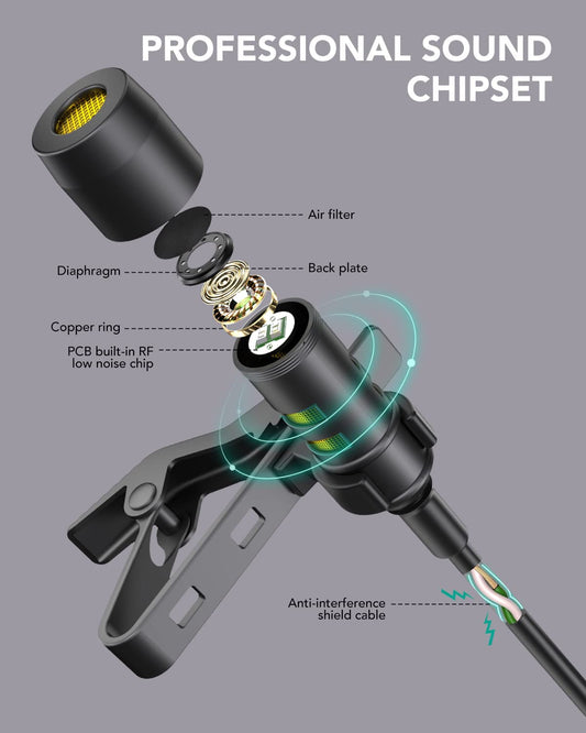 Valband Microphone Lavalier Professionnel pour Iphone/Vidéoconférence/Podcast/Dictée Vocale/Microphone à Condensateur d'Enregistrement Audio Vidéo Omnidirectionnel de Qualité Youtube (6M)