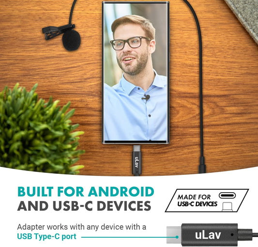 Movo Ulav - Microphone cravate filaire omnidirectionnel USB-C à pince - Micro externe à pince pour smartphone Android, iPad Pro, appareils USB Type-C - Microphone à revers pour Youtube, Vlogging, Interviews
