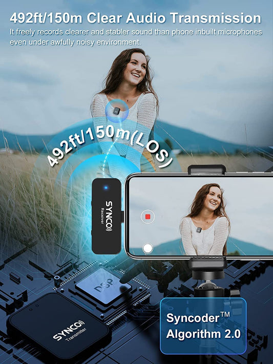 SYNCO Microphone cravate sans fil pour smartphone de type C, micro à revers G1T 2,4 GHz avec micro pare-brise pour Android, micro à clipser Plug & Play pour Youtube Vlog Tiktok Interview vidéo Wireless-Go-Mic