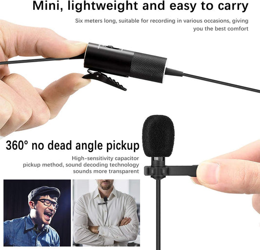 IUKUS Microphone Lavalier, Microphone Lavalier à condensateur omnidirectionnel à Pince Professionnel avec Cordon de 6 M/19 Pieds pour Appareil Photo/Smartphone