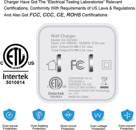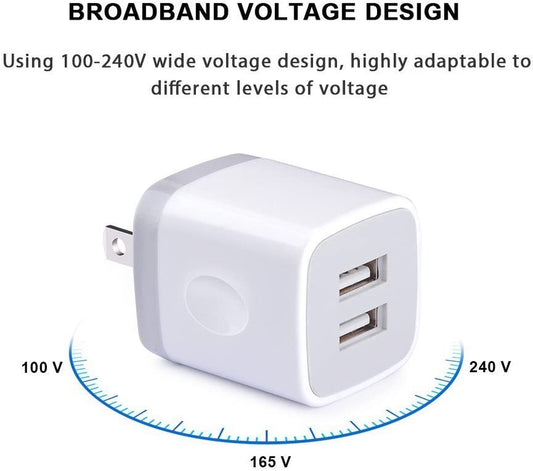 Chargeur mural USB, Fivebox 2Pack double port 2,1 A chargeur mural rapide adaptateur de base en brique bloc de charge chargeur cube prise chargeur boîte pour iPhone 14 13 12 11 Pro X 6 6S 7 8 Plus, iPad, Samsung, Android