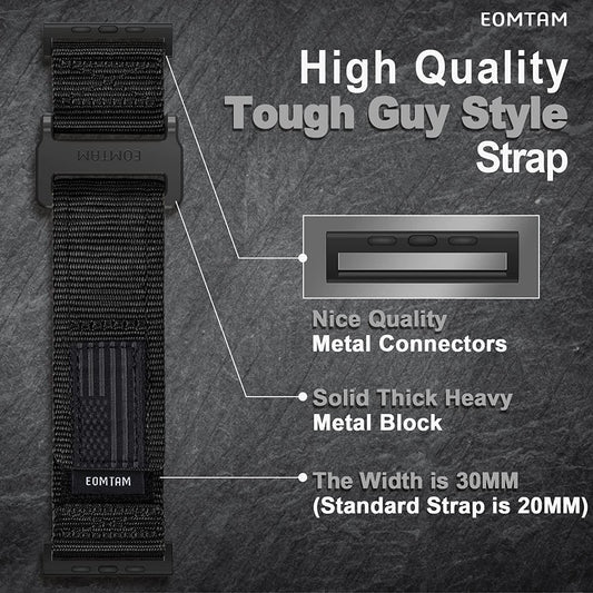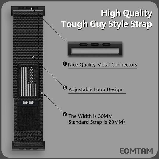 EOMTAM Bracelet en nylon réglable pour homme de largeur 30 mm pour Apple Watch Band Ultra 49 mm, 45 mm, 44 mm, 42 mm, 41 mm, 40 mm, 38 mm, bracelet sport robuste tissé doux pour Iwatch Series 8 SE 7 6 5 4 3