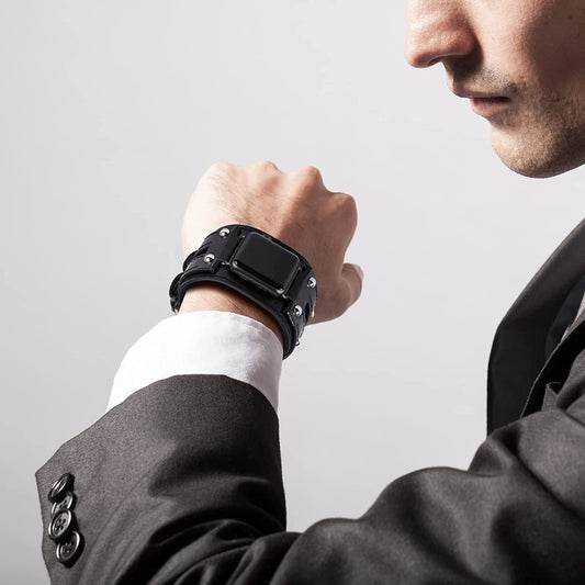 OUHENG Compatible avec Apple Watch 49 mm, 45 mm, 44 mm, 42 mm, bracelet de rechange en cuir véritable compatible avec Apple Watch Ultra Series 8/7/6/5/4/3/2/1/SE2/SE, bracelet noir avec adaptateur noir