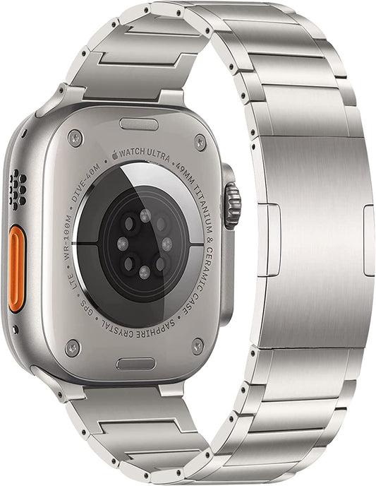 LDFAS Bracelet en titane compatible avec Apple Watch Ultra Band 49 mm Bracelet à maillons en titane Bracelet de montre en métal avec boucle incurvée Compatible pour Apple Watch Se/Series 8/7 45 mm/44 mm, gris argenté