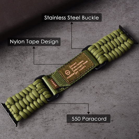 CAGOS Compatible avec Apple Watch Band 49 mm, 45 mm, 44 mm, 42 mm, bracelet en nylon paracorde de survie robuste, boucle de sport tressée pour bracelets Iwatch Ultra Series 8 7 6 5 4 3 2 1 SE pour hommes