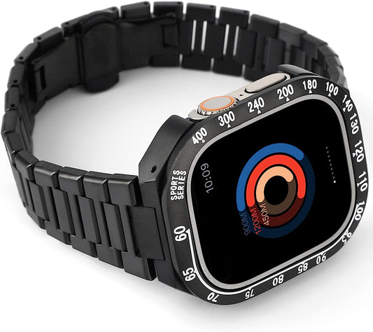 GARTOO Bandes en acier inoxydable Lunette métallique pour Apple Watch Ultra 49 mm, bracelet de remplacement de luxe en acier inoxydable avec outil Iwatch Ultra 49 mm pour homme