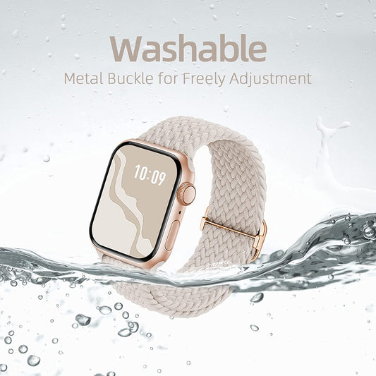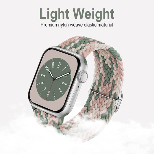 Boucle solo extensible tressée compatible avec Apple Watch Band 38 mm, 40 mm, 41 mm, 42 mm, 44 mm, 45 mm, 49 mm, pour femmes et hommes, bracelets élastiques en nylon pour Iwatch Series 8 7 6 SE 5 4 3 2 1 Ultra, 4 paquets