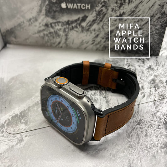 Compatible avec Apple Watch Band 49 mm, 45 mm, 44 mm, 42 mm, Mifa, cuir, silicone, hybride, pour homme et femme, boucle de rechange, bracelet de sport vintage pour Iwatch Series Ultra 8 7 6 5 SE 4 3 2 1